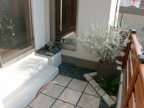 すこし離れた2箇所のスペースを白いレンガやタイルなど同じ素材を使い統一感をだしながら、デザインや植栽に変化をつけ、それぞれがより表情豊かな独立したガーデンにした。